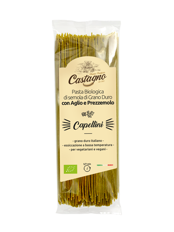 Semola di grano* duro, aglio* disidratato (0,6%), prezzemolo* disidratato (0,5%). *Ingrediente biologico.